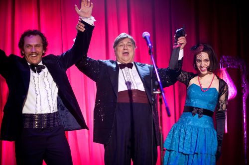 Chris (Marshall Lancaster) and Ray (Dean Andrews) are preparing for their performance on stage at the Opportunity Cops Police Gala.