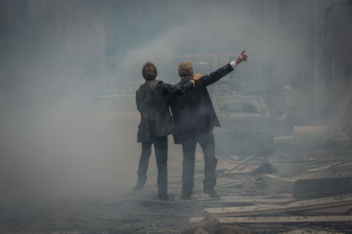 Peter Bowker: “He never smiles, Bernard, when he’s joking. So we were on set on the day we were doing the big set piece where the two…guys are looking at the plume of smoke. I was standing with Bernard and this real policeman was talking to him making small talk. And Bernard was giving nothing back. He said, ‘And how long is it since Boys From The Blackstuff?’ And Bernard went, ‘We’re not doing Boys From The Blackstuff.’ Then nothing. I’m going, ‘It’s 19 years, isn’t it…?’ Then Bernard got me by the arm and he walked me across and said, ‘I got you out of that…’” (laughter)