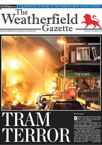 The 32-page tram crash issue was printed in the Manchester Evening News, with the full support of ITV, to mark Corrie’s 50th anniversary today – Thursday Dec 9 2010.